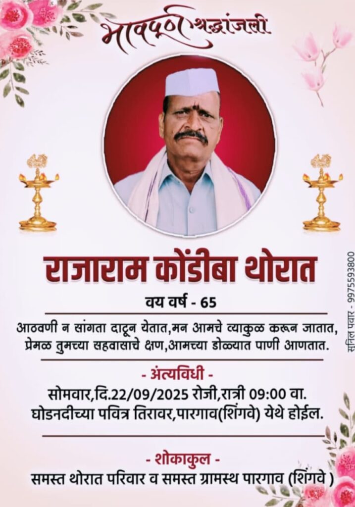 याबाबत मिळालेली माहिती अशी की, दिनांक 22/09/2025 रोजी सकाळी राजाराम थोरात हे पुणे येथुन गावी आले होते आणि दुपारी ३ च्या सुमारास शेतात काम करण्यासाठी गेले असता राजाराम थोरात यांनी त्यांचे शेतात जवळच असणाऱ्या लिबांच्या झाडाला दोरीच्या सहाय्याने गळफास घेऊन आत्महत्या केली असल्याचे शेजारील लोकांना दिसले.