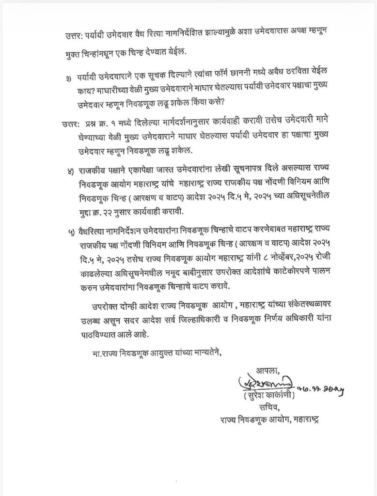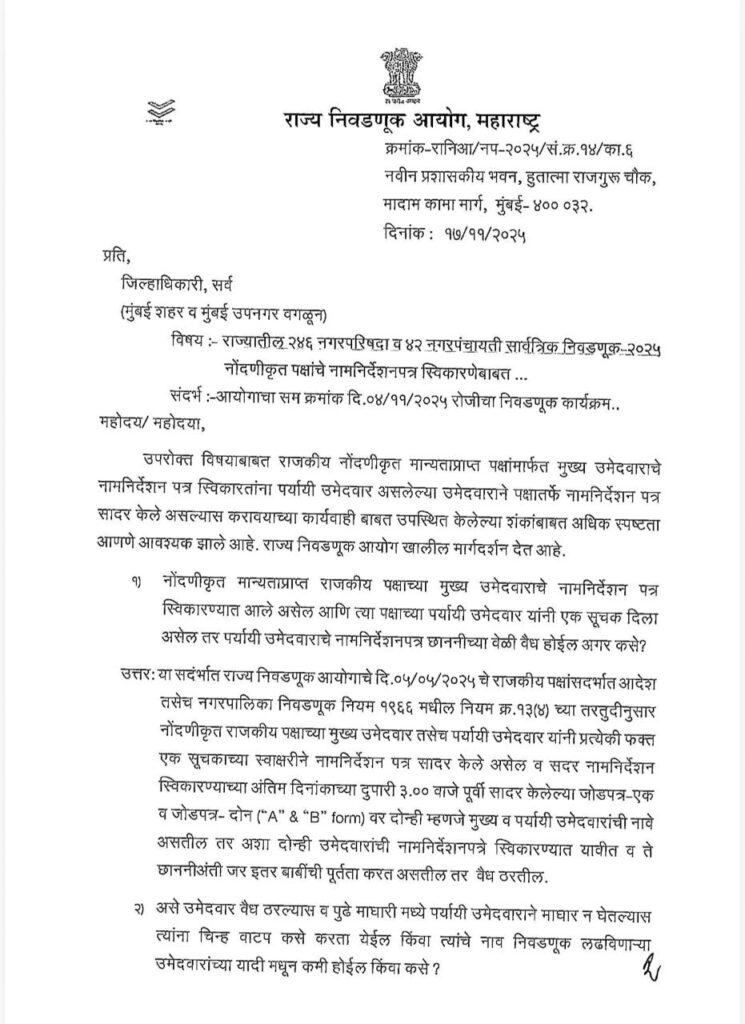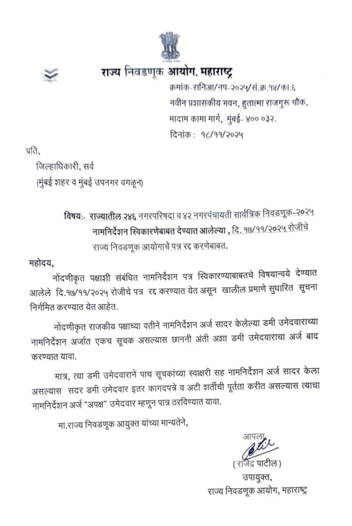 दि. १७/११/२०२५ रोजीचे राज्य निवडणूक आयोगाचे पत्र रद्द करणे चा आदेश