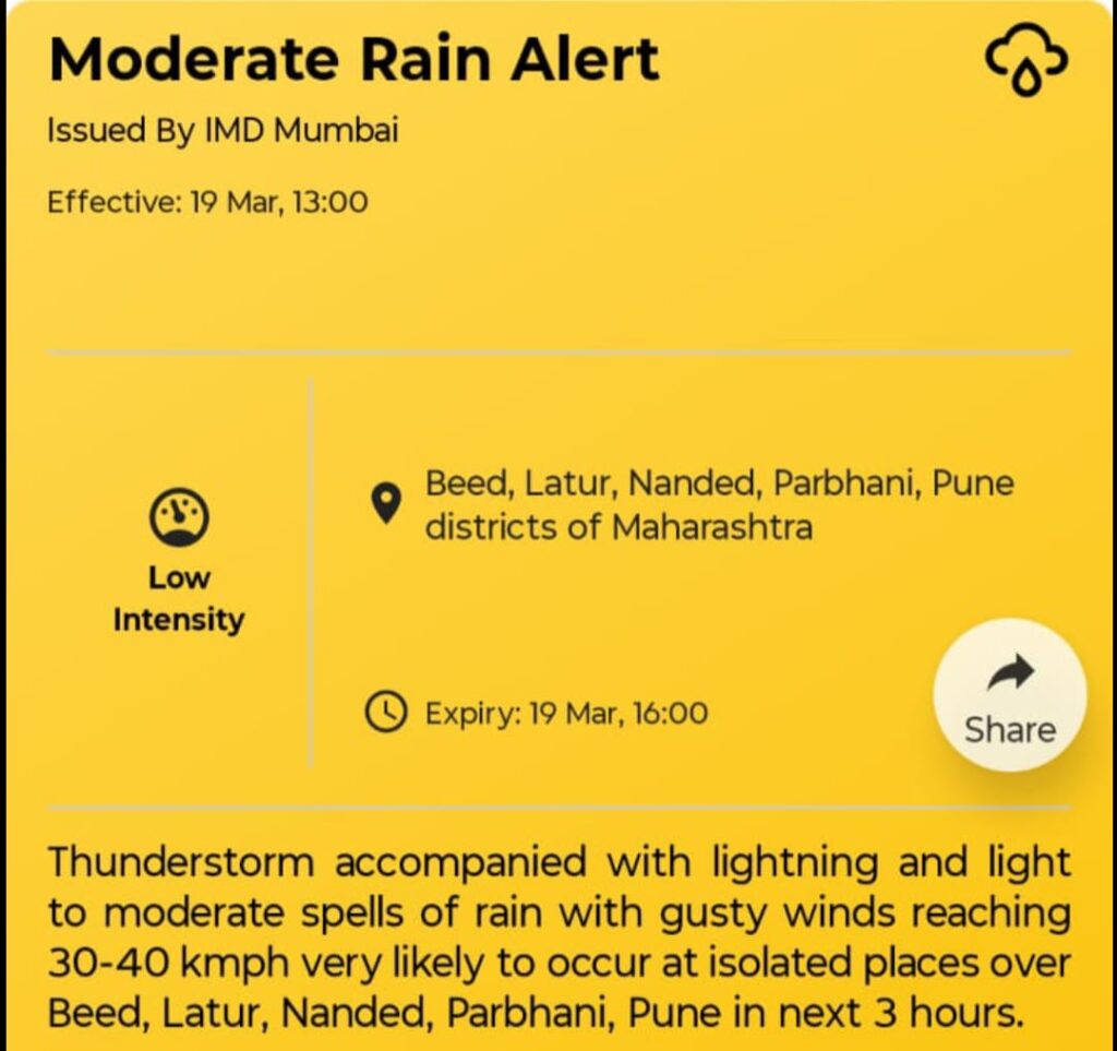 शेतकऱ्यांनी आपल्या शेतमालाची योग्य काळजी घ्यावी आणि विजा चमकत असताना झाडाखाली किंवा मोकळ्या जागेत थांबणे टाळावे, अशा सूचनाही प्रशासनाकडून देण्यात आल्या आहेत.